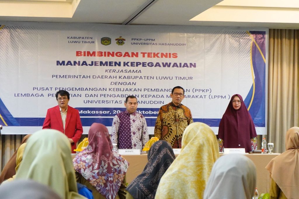 Pemerintah Daerah Kabupaten Luwu Timur bekerja sama dengan Pusat Pengembangan kebijakan Pembangunan (PPKP) Lembaga Penelitian dan Pengabdian Kepada Masyarakat (LPPM) Universitas Hasanuddin mengadakan kegiatan Bimbingan Teknis Manajemen Kepegawaian di Hotel Santika Makassar yang diselenggarakan pada tanggal 22 Oktober hingga 24 Oktober 2024 yang diikuti oleh 67 peserta ASN dari Pemerintah Kabupaten Luwu Timur.