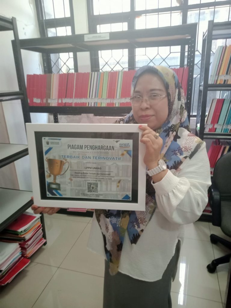 Pustakawan terkemuka dari Lembaga Penelitian dan Pengabdian kepada Masyarakat (LPPM) Universitas Hasanuddin (UNHAS) Ibu St. Darmawati baru-baru ini dianugerahi piagam penghargaan sebagai “Pustakawan Terbaik dan Terinovatif”. Penghargaan ini diberikan untuk menghargai kontribusi luar biasa dalam pengembangan sumber daya informasi di lingkungan akademik.