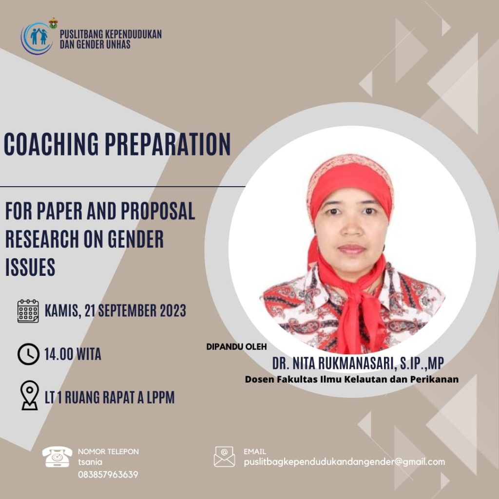 Lembaga Penelitian dan Pengabdian kepada Masyarakat (LPPM) Universitas Hasanuddin (Unhas) melalui Pusat Penelitian dan Pengembangan (Puslitbang) Kependudukan dan Gender baru-baru ini berhasil menyelenggarakan acara “Coaching Preparation: For Paper and Proposal Research on Gender Issues” di Ruang Rapat A, LPPM Unhas (21/09).